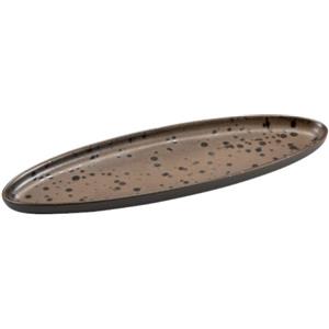 LE COQ Phobos Vassoio Ovale Stretto in Porcellana Marrone con Puntini Reattivi - 31x10 cm, Confezione da 6 Pezzi