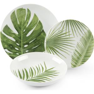 Excelsa Foliage Servizio Piatti 18 Pezzi in Porcellana Decorata per 6 Persone, Colore Bianco/Verde