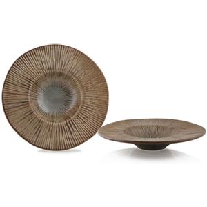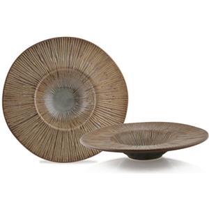 Frescura Tai Pasta Bowl Cappello del Prete 28 cm in Stoneware Colore Terra - Set da 6 Pezzi con Decoro Radiale