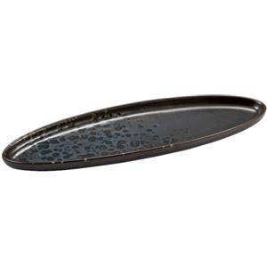LE COQ Porcelaine Vassoio Ovale Stretto Nero con Puntini Blu - 31x10 cm, Altezza 2 cm, Confezione da 6 Pezzi
