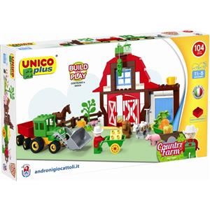 Androni Fattoria Unico Plus - Set di Costruzioni con 104 Pezzi per Creare una Fattoria Completa