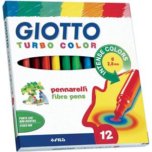 Giotto Pennarelli Turbo Color - Astuccio da 12 Colori - Punta Fine 2,8 mm - Inchiostri Innocui e Lavabili
