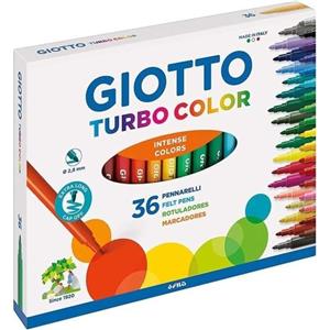 Giotto Turbo Color - Pennarelli Assortiti 36 Colori con Punta Fine 2,8 mm, Inchiostro Innocuo e Lavabile