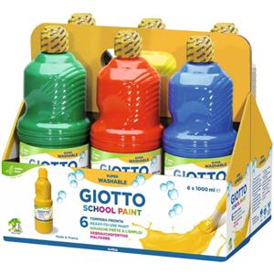 Giotto Tempera Pronta School Paint - 6 Flaconi da 1 L, Colori Assortiti, Facile da Lavare e Stendere