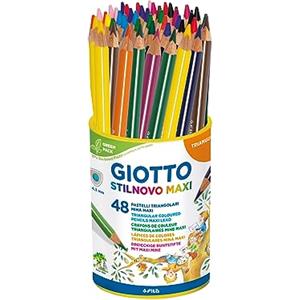 Giotto Stilnovo Maxi - Matite Colorate Spesse, Barattolo da 48 Pezzi, Mina da 4,3mm, Formato Triangolare, Colori Assortiti
