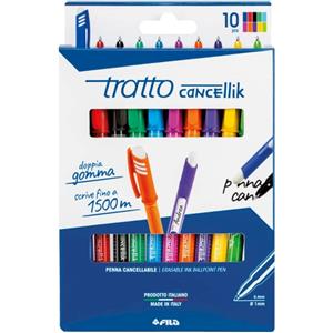 TRATTO Cancellik Penna a Sfera Cancellabile 1,0 mm - 10 Pezzi Assortiti (Blu, Rosso, Verde, Nero)