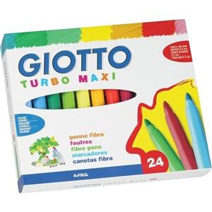 Giotto Turbo Maxi - Astuccio da 24 Pennarelli Colorati con Punta Grossa 5 mm, Super Lavabili