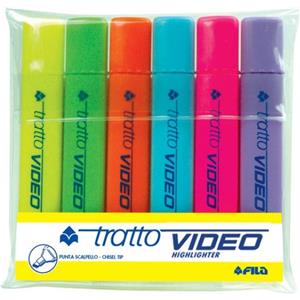 TRATTO Evidenziatore Video Punta Scalpello 1-5 mm - Confezione da 6 Colori Assortiti - Inchiostro a Base d'Acqua