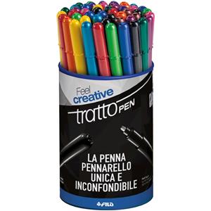 TRATTO Pen - Pennarello a punta sintetica indeformabile, inchiostro a base d'acqua, tratto 0,5 mm, barattolo da 50 colori assortiti
