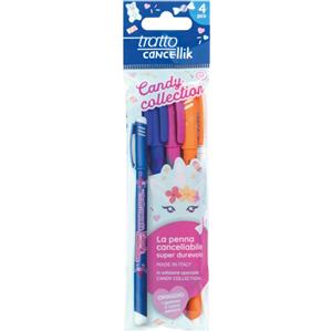 Tratto Cancellik Candy Collection - Penna a sfera cancellabile 4 pz con gomma a cuore, colori assortiti