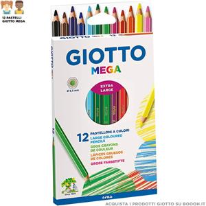 Giotto Pastelli Colorati Mega - Astuccio 12 Pezzi - Mina Esagonale Ø 5,5 mm - Lunghezza 18 cm
