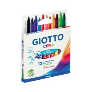 Giotto Pastelli a Cera - Astuccio da 12 Colori Assortiti, Tondi e Lavabili, Diametro 8.5 mm, Lunghezza 90 mm