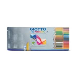GIOTTO Pastelli Supermina - Astuccio in Metallo da 50 Matite Colorate con Mina da 3,8 mm, 2 Matite HB, Temperamatite e Gomma