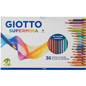 Giotto Pastelli Colorati Supermina - Astuccio da 36 Pezzi - Mina Extra-Large 3,8 mm - Lunghezza 18 cm - Esagonale
