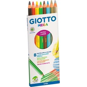 Giotto Mega Pastelli Colorati - Astuccio da 8 Pezzi con Mina Gigante Diametro 5,5 mm, Lunghezza 18 cm, Colori Assortiti