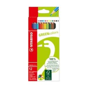 STABILO GREENcolors Matite Colorate Ecosostenibili - Astuccio da 12 Colori Assortiti, Fusto Esagonale in Legno Certificato FSC, Mina da 3 mm