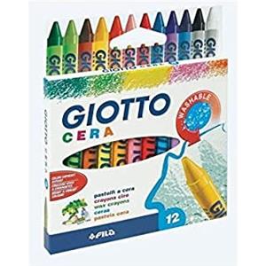 Giotto Pastelli a Cera - Astuccio da 12 Colori Assortiti, Tondi e Lavabili, Diametro 8.5 mm, Lunghezza 90 mm