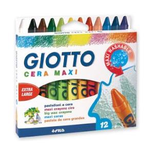 FILA Giotto Pastelli a Cera Maxi - Astuccio da 12 Colori - Mina 11,5 mm - Facili da Stendere e Lavabili
