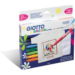 Giotto Pennarelli per Tessuti Decor Textile - Astuccio da 8 Colori Assortiti T-Shirt Bianca, Tratto Fine 1-3 mm, Resistenti a Lavaggi