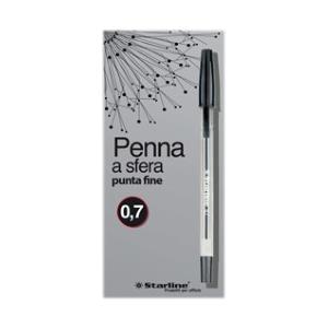 Starline Penna a Sfera con Cappuccio - Punta Fine 0,7mm - Colore Nero - Fusto Trasparente - Conf. 50 Pezzi