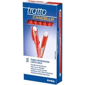 TRATTO Penna a Sfera Cancellabile Cancellik Rosso - Punta 1,0 mm - Confezione da 12 Pezzi - Doppia Gomma e Cappuccio Anti Soffocamento