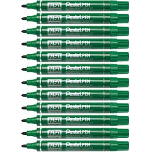 Pentel N50 Marcatore Permanente Verde Punta Conica 4,3 mm Fusto in Metallo 12 Pezzi