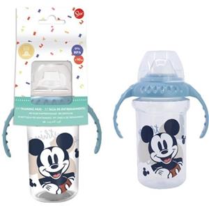 REAL TRADE ITALIA SRL Bicchiere Viaggio Bambini Disney Mickey Mouse in Plastica Senza BPA con Beccuccio, Tappo Antigoccia e Due Manici, 330ML