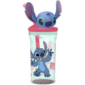 Disney Stitch Bicchiere 3D con Cannuccia per Bambini, 360 ml, Tritan Senza BPA, Lavabile e Riutilizzabile