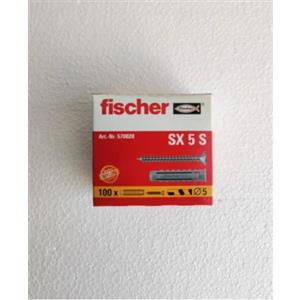 Fischer Tasselli in Nylon con Vite SX 5 x 25 mm - Confezione da 100 pezzi per Muro Pieno e Mattone Forato