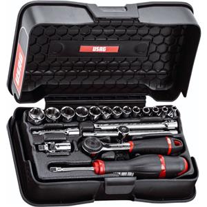 Usag Set Bussole Esagonali e Inserti Avvitare X-Grip - 23 Pezzi con Cricchetti Reversibili e Varie Misure