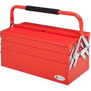 DURHAND Cassetta Porta Attrezzi in Metallo Pieghevole con 5 Vassoi e 3 Ripiani, Colore Rosso
