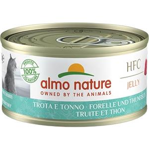 Almo Nature HFC Jelly - Alimento umido per gatti con Trota e Tonno in gelatina, 6 x 70 g, senza glutine e ingredienti naturali