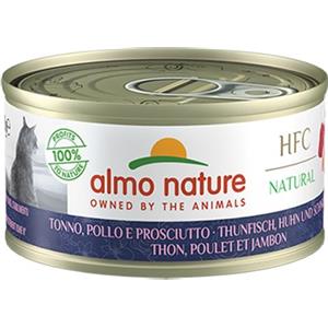 Almo Nature HFC Natural Cibo Umido per Gatti - Tonno, Pollo e Prosciutto - Lattina da 70 gr
