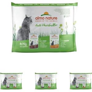 Almo Nature Holistic Anti Hairball Multipack con Manzo & con Pollo Cibo Umido Gatto Adulto 6 x 70g cad (Buste) (Confezione da 4)