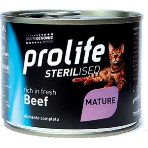 Prolife Sterilised Cibo Umido per Gatti Adulto e Anziano - Manzo Fresco 200g, Gluten Free e Grain Free
