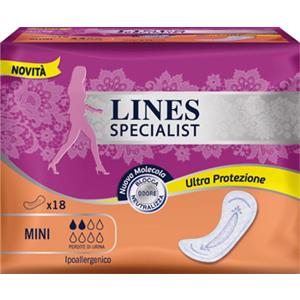 FATER SpA Lines Specialist Mini Assorbenti per Incontinenza Leggera - 18 Pezzi, Tecnologia Ultra&Anatomy, Sottile e Assorbente