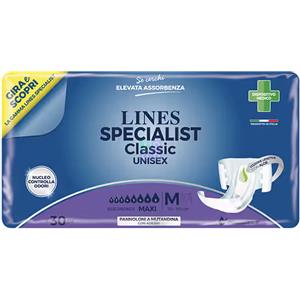FATER SpA LINES SPECIALIST Classic Pannoloni a Mutandina Maxi Unisex 30 Pezzi con Controllo Odori e Indicatori di Cambio