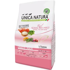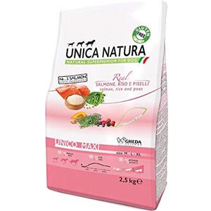 Gheda Petfood Unica Natura Alimento Completo per Cani di Media e Grande Taglia a Base di Salmone Riso e Piselli in Confezione da 2500 Grammi
