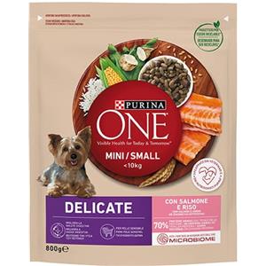 PURINA ONE Mini Delicate - Crocchette per Cani di Taglia Piccola con Salmone e Riso, 800 g