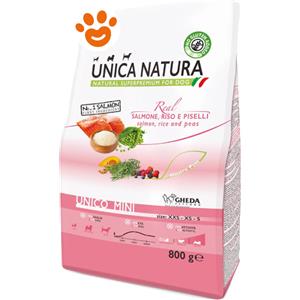 Unica Natura Mini - Crocchette Olistiche per Cani con Salmone, Riso e Piselli - 800g, Gluten-Free