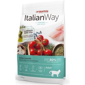 Italian Way Croccantini per Gatti Sterilizzati con Trota e Mirtilli - 300 gr, Senza Cereali e Ideale per il Peso