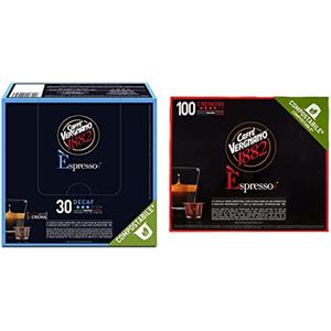 Caffè Vergnano 1882 Èspresso Capsule Caffè Compatibili Nespresso Compostabili, Decaffeinato - 8 confezioni da 30 capsule & Èspresso Cremoso, 100 Capsule, Compatibili Nespresso, Compostabili