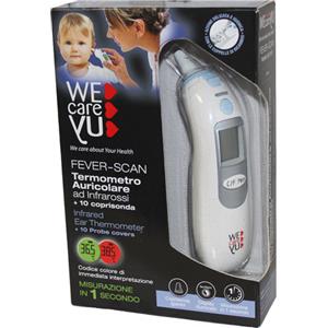 URAGME Srl Termometro Auricolare WECAREYU FEVER-SCAN ad Infrarossi con 10 Coprisonda e Display Illuminato