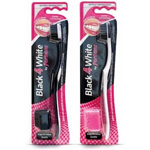 Forhans Black4White Spazzolino Antiplacca con Setole in Carbone Attivo - Azione Sbiancante e Gentile