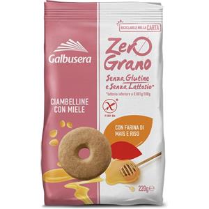 Galbusera Frollini Ciambelline Zero Grano con Miele - Senza Glutine e Lattosio, 220 g