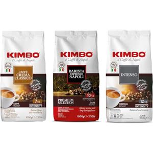 Kimbo Kit Degustazione Caffè in Grani 3 Kg - 1x Barista Espresso Napoli, 1x Crema Classico, 1x Espresso Intenso - Miscela Arabica e Robusta - Espresso Bar - 3 Confezioni da 1 Kg