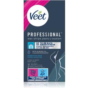 Veet Strisce di Cera a Freddo Easy-Gelwax per Pelle Sensibile - 12 pz con Olio di Mandorle