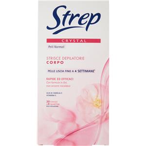 Strep Strisce Depilatorie Corpo Crystal - 20 Pezzi, Formula in Gel Pronte all'Uso con Olio di Camelia e Vitamina E
