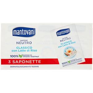Mantovani Saponetta Neutra con Latte di Riso - 3 Pezzi da 90g, Dermatologicamente Testato e di Origine Vegetale
