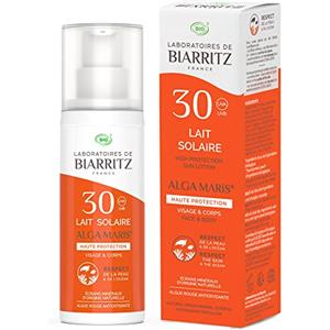 Laboratoires de Biarritz Latte Solare Bio FPS30 - Protezione Minerale per Viso e Corpo, Profumo di Cocco e Karité, Eccellente Resistenza all'Acqua